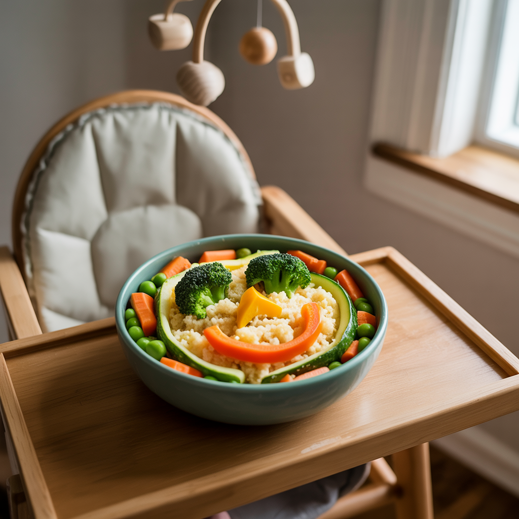 Dieses einfache, bunte Gericht kombiniert weich gedämpftes Gemüse mit zartem Couscous – schnell zubereitet, mild gewürzt und voller Nährstoffe. Couscous hat eine besonders feine Konsistenz und ist daher perfekt für Kleinkinder geeignet, die sich langsam an Familiengerichte herantasten. Das Gericht ist vielseitig, gut bekömmlich und auch kalt ein idealer Snack für unterwegs oder die Brotdose.