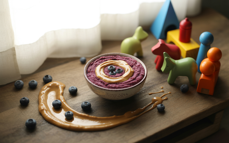 Diese Heidelbeer Polenta mit Mandelmus ist ein sättigendes, mildes Frühstück oder Snack für Kinder ab 10 Monaten. Die Polenta ist glutenfrei und besonders bekömmlich, Heidelbeeren bringen natürliche Süße und Farbe, während Mandelmus wertvolle Fette liefert. Das Gericht ist schnell zubereitet, vielseitig und auch für unterwegs geeignet. Die Konsistenz ist weich und cremig, wodurch es leicht gelöffelt werden kann. Es ist eine tolle Möglichkeit, mehr Abwechslung ins Frühstück zu bringen.