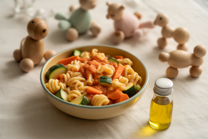 Die Sauce kann mit verschiedenem Gemüse wie Brokkoli oder Kürbis variiert werden. Wer möchte, kann etwas fein geriebenen Käse hinzufügen, wenn das Kind schon Käse verträgt. Für ältere Kinder passt auch ein Hauch Muskatnuss dazu. Das Rezept ist schnell gemacht und bietet eine gesunde Alternative zu klassischen Nudelsaucen.