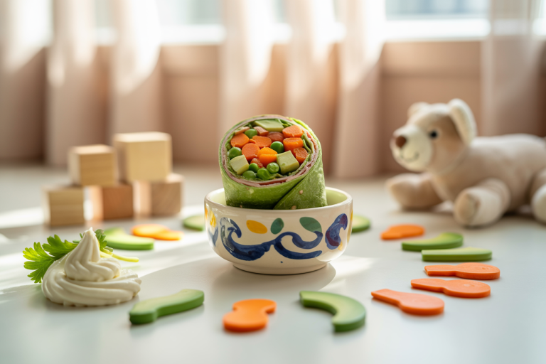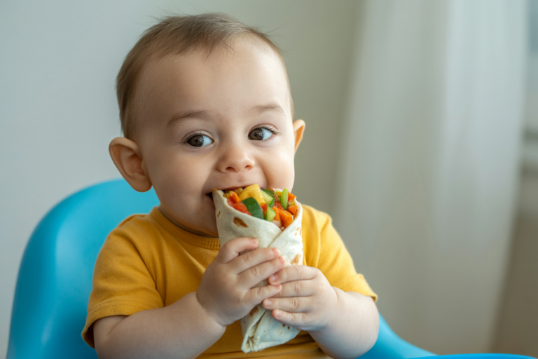 Ein weicher Wrap mit bunter Gemüsefüllung ist ideal für Kleinkinder ab 12 Monaten, die gerne selbst essen. Dieses einfache Fingerfood eignet sich perfekt fürs Mittag- oder Abendessen und kann gut variiert werden. Durch die Kombination von gegartem Gemüse und weichem Fladenbrot wird die Mahlzeit besonders bekömmlich und sättigend. Ideal auch für unterwegs oder zum Mitnehmen in die Kita.